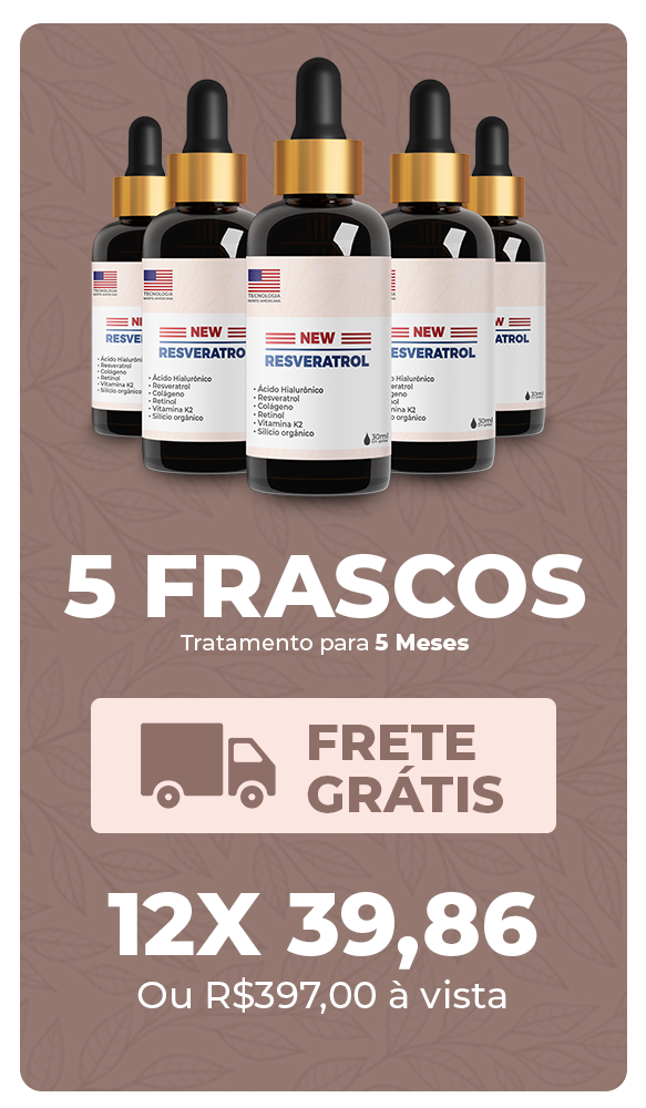 Com a aprovação da ANVISA, o tratamento com o New Resveratrol Americano + Vitamina K2 oferece uma fórmula exclusiva para combater naturalmente rugas, marcas de expressão, pés de galinha e bigode chinês. Fique atento às imitações no mercado brasileiro, pois somente produtos autenticamente americanos asseguram resultados visíveis em até 90 dias. Invista em sua beleza com total confiança.